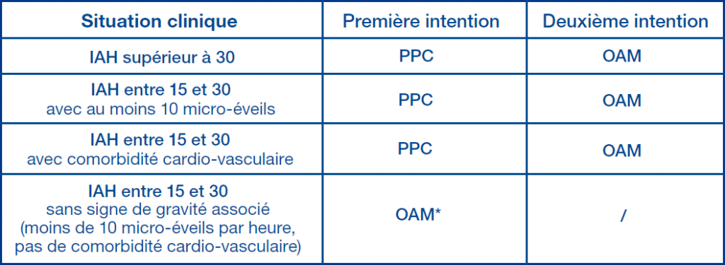 On parlera également de Syndrome d’Apnée Obstructive du Sommeil si le taux d’apnées et d’hypopnées (IAH) dépasse 5/heure et est associé à des symptômes comme une somnolence, des sensations d’étouffement ou en présence de pathologies cardiovasculaires associées.